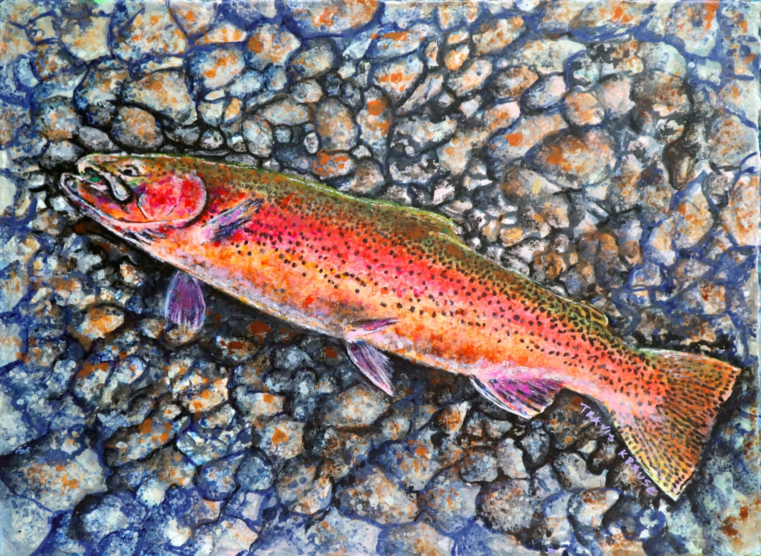 Most recently, I had the pleasure of buying "Glass Brown Trout" as a gift for my brother-in-law, a DC lawyer who loves to fly fish, but rarely gets the chance. He is also a generous individual, supporting some of his younger brothers and sisters, and gives much to charity, and indeed he helped me out of a bind. This painting on glass was my way of saying thanks, and it lit up his eyes like nothing I've seen before.